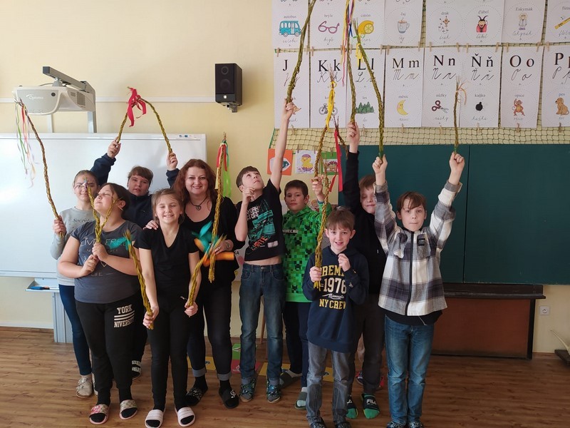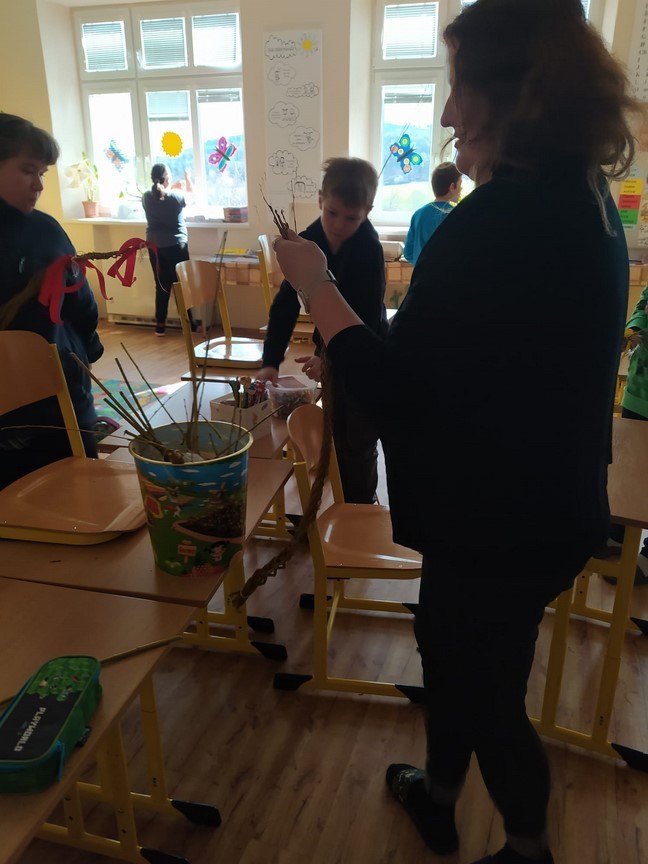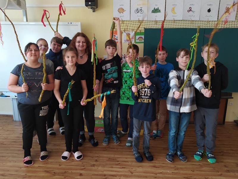 Pletení velikonočních pomlázek 2024 Velká dřina, ale také velká zábava. Děti se do proutků nezamotaly a odcházely domů s krásnými pomlázkami.
