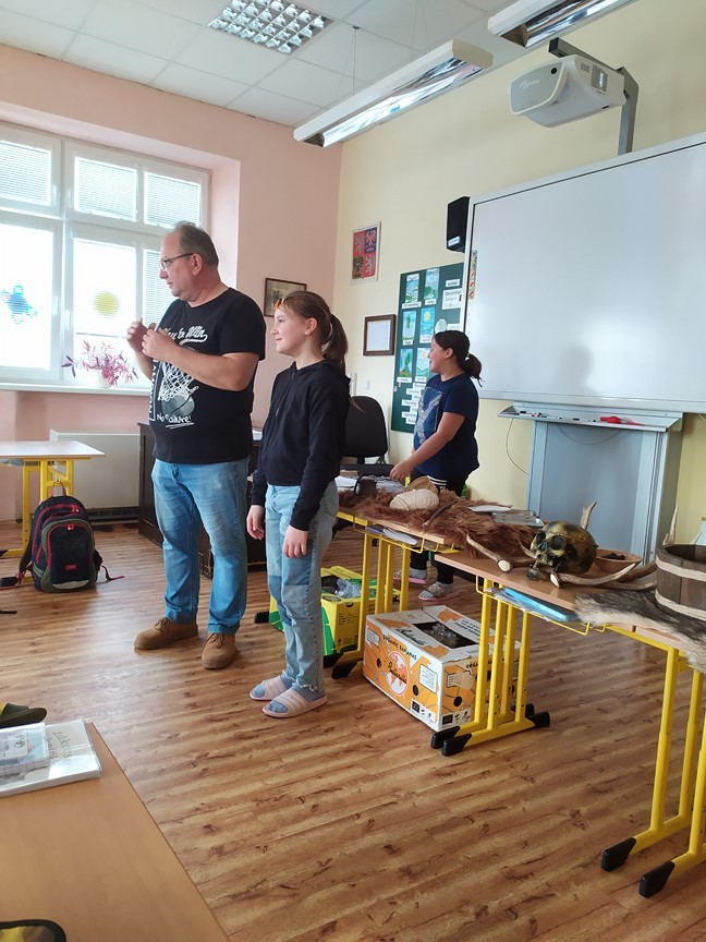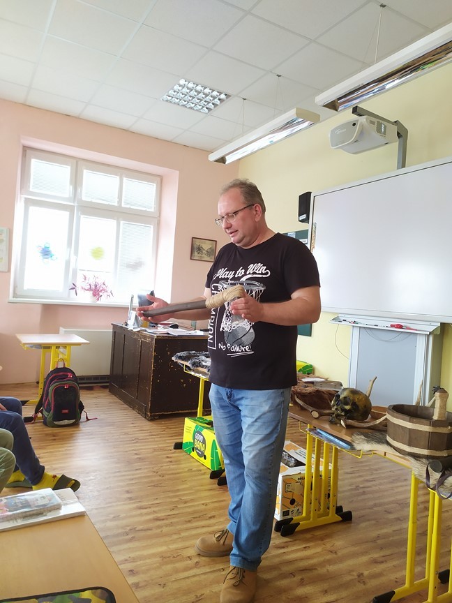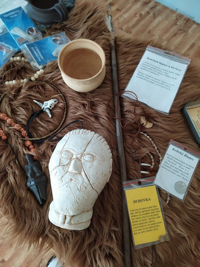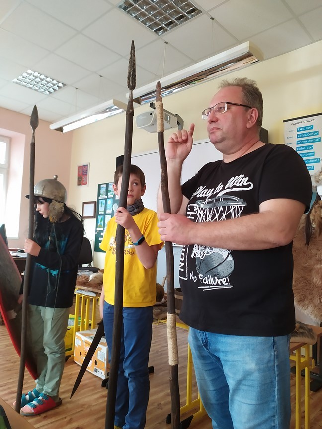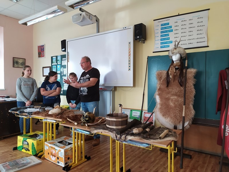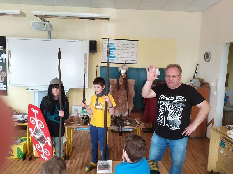 S panem Liborem Markem opět nezapomenutelný zážitek! Přednáška s obrázky, vtipným, ale věcným výkladem. Vše doplněno předměty z dané doby. Zodpovězeny všechny dotazy. Děvčata předvedla formou módní přehlídky keltské šperky, chlapci si vyzkoušeli lov:-) Velké díky a velký respekt.